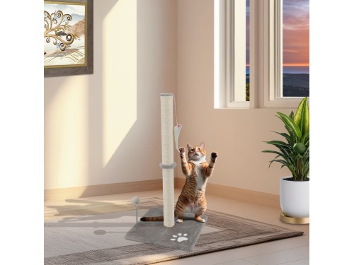 Krabpaal voor katten 81,5 cm. met Sisal touw en pluche. Het is het favoriete speeltje van alle katten die er graag op springen, mee spelen en lange dutjes doen, waarbij meubels en huishoudelijke voorwerpen onbeschadigd blijven.